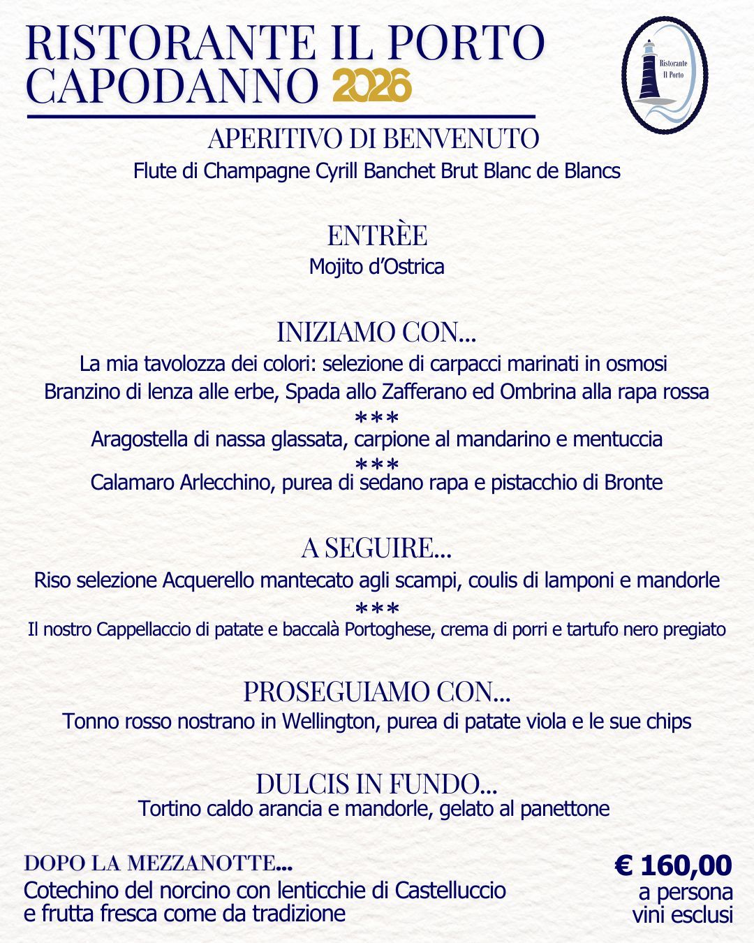 MENU' FOR THE END OF THE YEAR ! RESERVATION IS REQUIRED