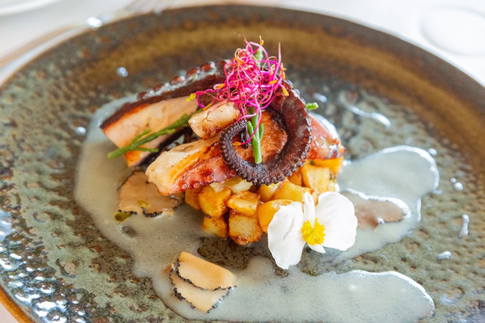 - Rock octopus on the plank potato variations in two consistencies and black summer truffle